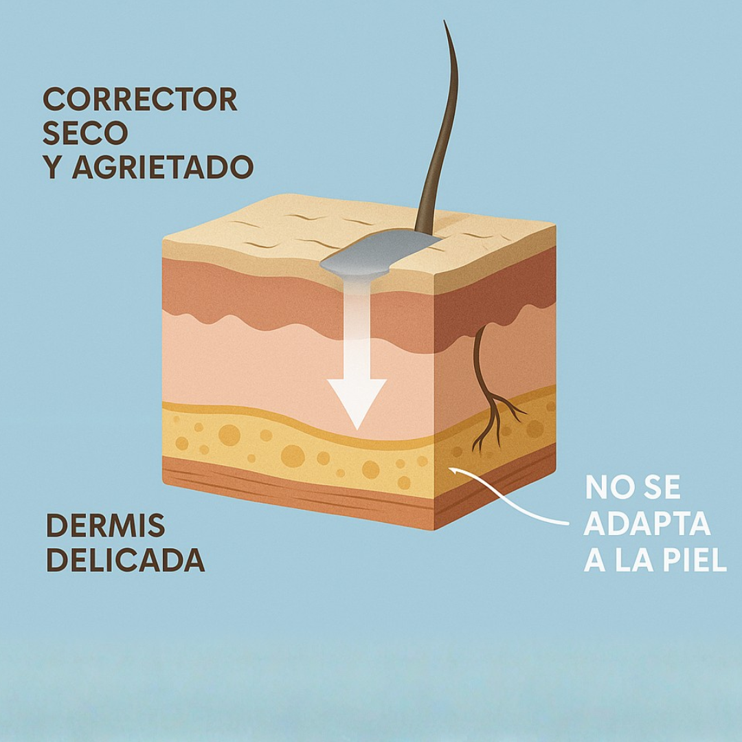 La piel del contorno cambia de temperatura y humedad constantemente, y los correctores comunes no saben seguirle el ritmo.